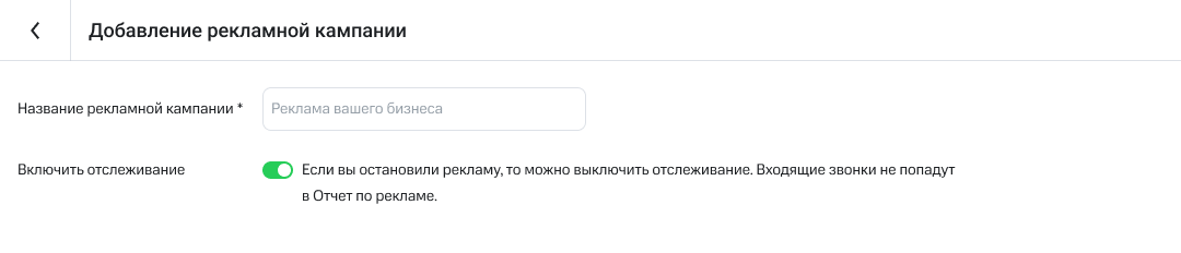 3. Введите название рекламной кампании и проверьте, чтобы отслеживание звонков было включено.