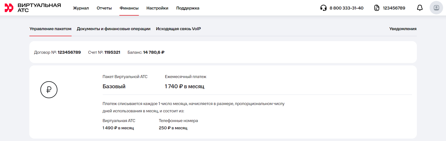 - о финансовой блокировке лицевого счета — когда на счете недостаточно средств и услуги ВАТС становятся недоступны, система сообщит об этом и укажет сумму задолженности;