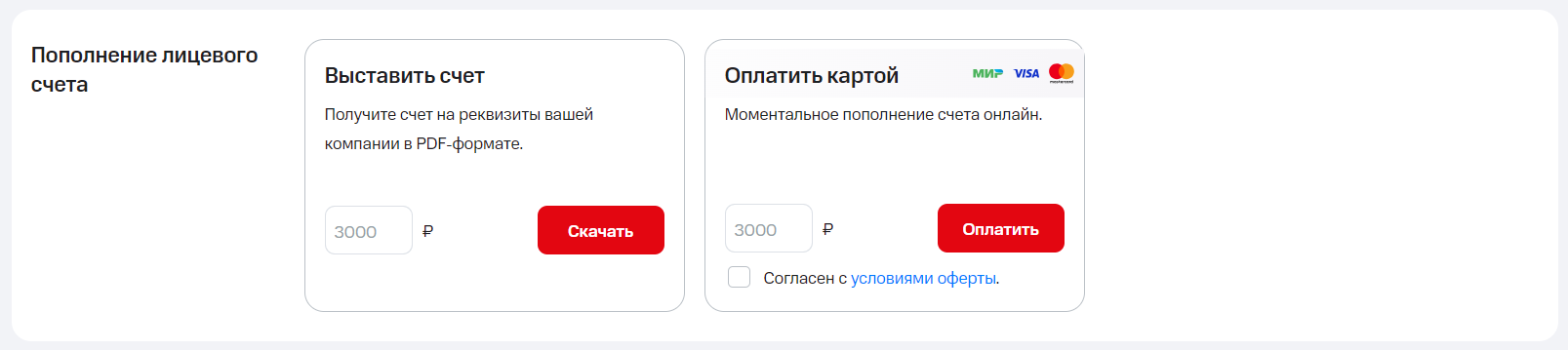 В любой момент вы можете пополнить счет на любую сумму через этот раздел.