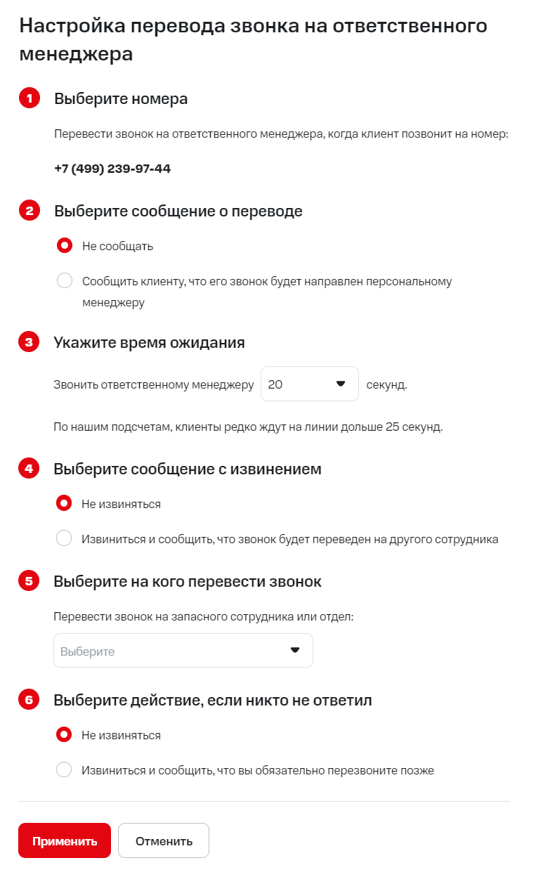 Если ваша компания использует несколько номеров, вы можете настроить сценарии работы в amoCRM для всех номеров сразу или для каждого в отдельности.
