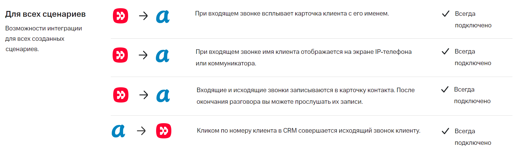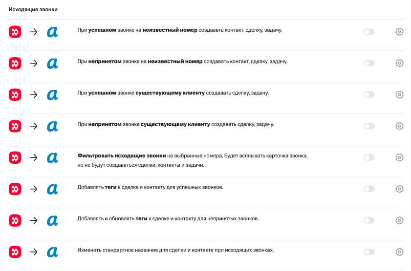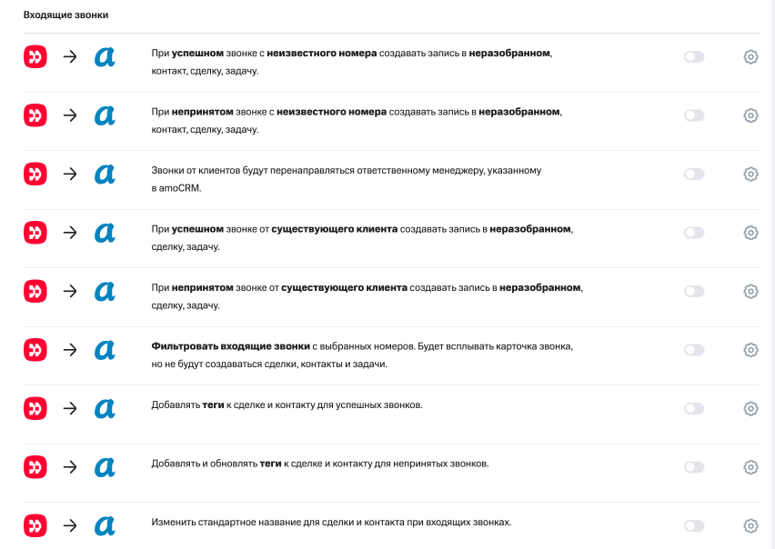 При этом для каждого типа звонка могут действовать свои правила интеграции.
