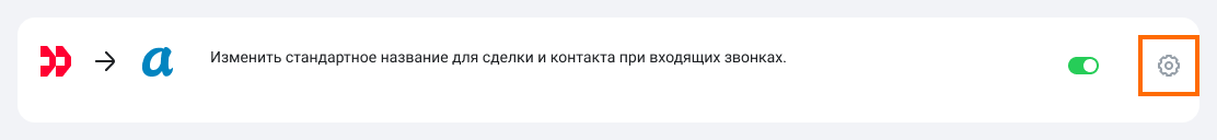 Если нужно будет изменить шаблон названия для сделки и контакта, нажмите на шестеренку в выбранном сценарии интеграции.