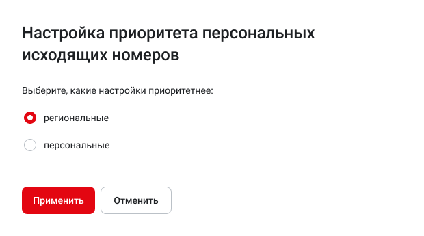 Проверьте корректность настроек – тип номеров с самым высоким приоритетом переместится вниз страницы. Например, если вы сделали персональные номера приоритетнее региональных, то страница настроек исходящих будет выглядеть примерно так: