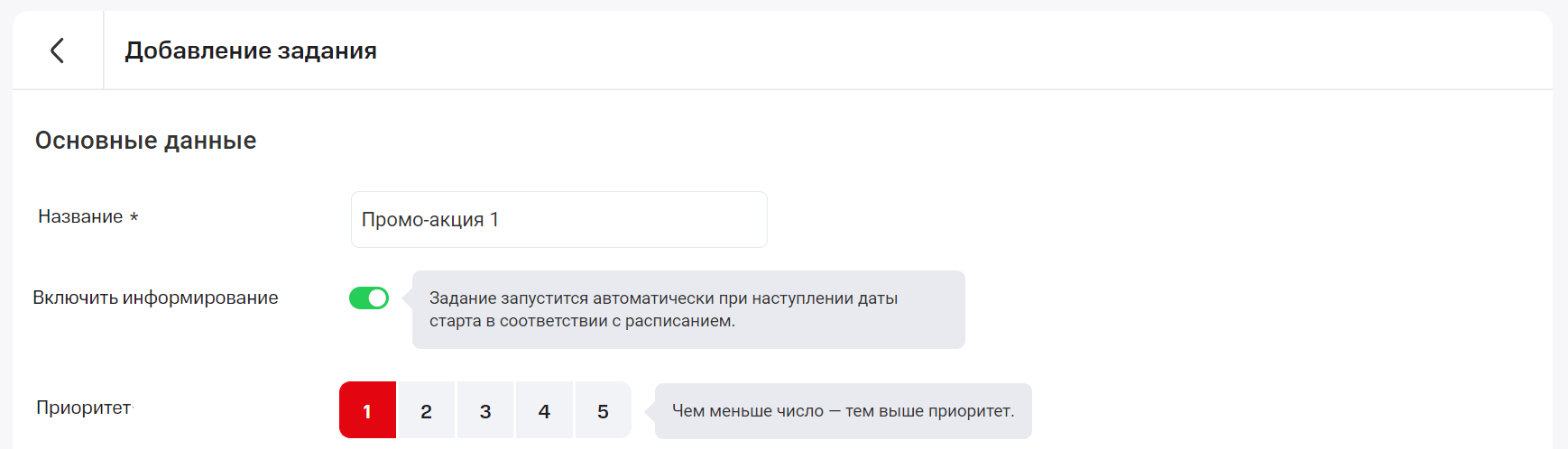 8. Если у вас будет запущено одновременно несколько задач на автоинформирование, определите приоритет каждой задачи по шкале от 1 до 5, где 1 – наиболее приоритетная задача, а 5 – наименее важная.