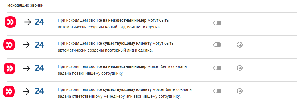 При этом для каждого типа звонка могут действовать свои правила интеграции.