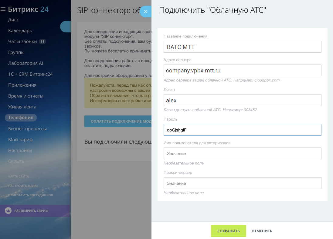 Интеграция через SIP-коннектор Битрикс24