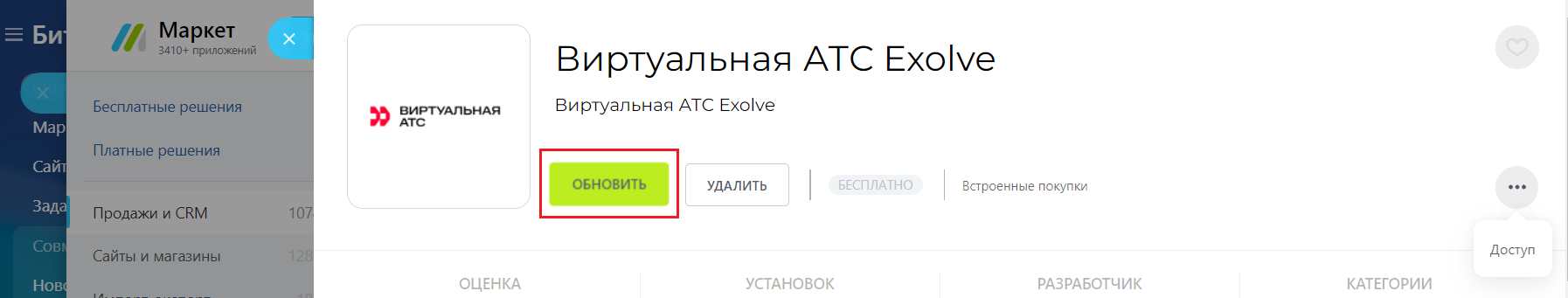 17 мая 2024 года Виртуальная АТС представила обновленный виджет интеграции, позволяющий управлять звонками прямо в интерфейсе Битрикс24. Если вы устанавливали интеграцию раньше, обновите ее, чтобы начать пользоваться всеми возможностями виджета. Для этого выполните два шага.