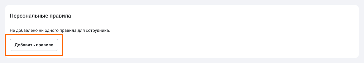 Чтобы настроить персональное правило, в блоке «Персональные правила» нажмите «Добавить правило».