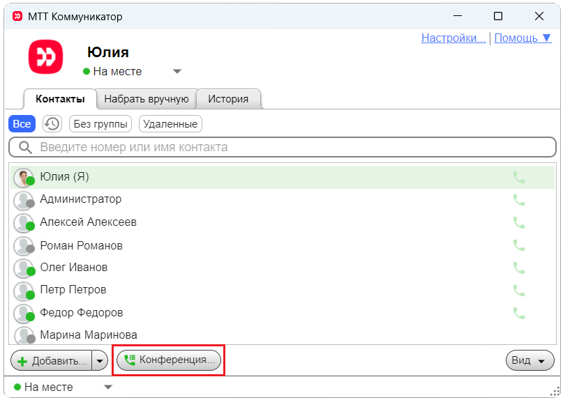 1. Нажмите в коммуникаторе кнопку «Конференция».