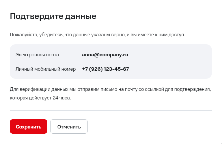 3. Если код введен корректно, то вы увидите сообщение о том, что персональные данные успешно подтверждены.
