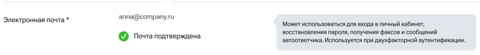 После подтверждения действия на странице изменения данных вы увидите зеленую галочку и сообщение о том, что ваша почта подтверждена.