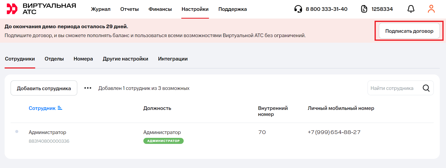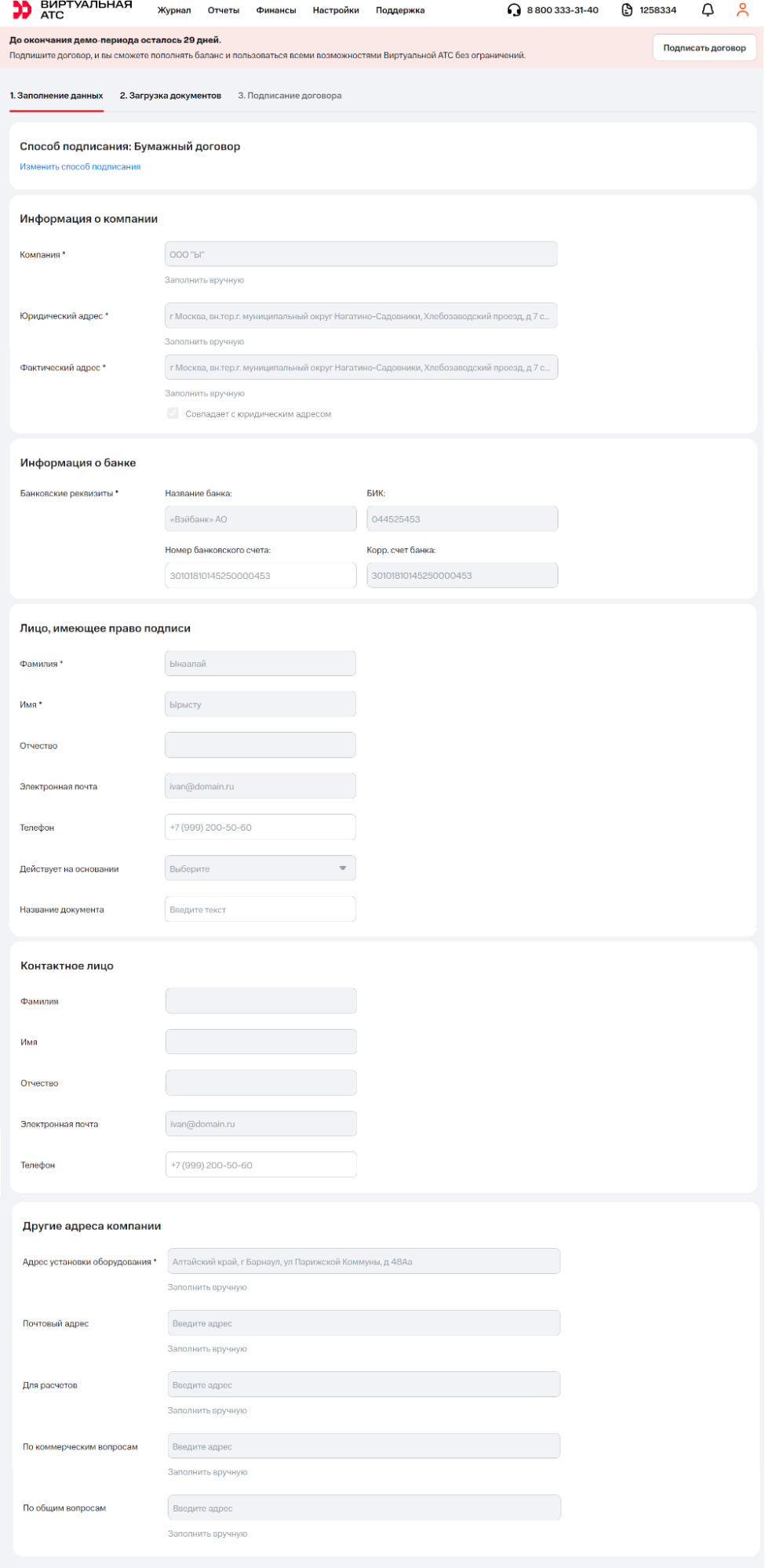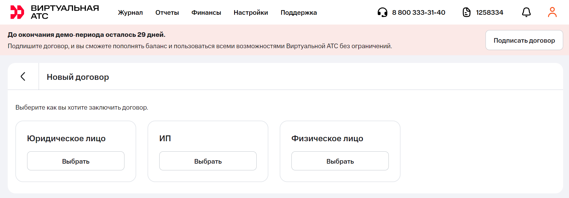 В течение 30 дней после регистрации в Виртуальной АТС вы можете перейти на коммерческие условия обслуживания и подписать договор двумя способами: