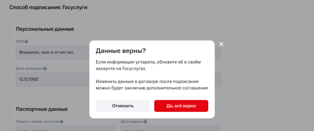 4. ВАТС попросит вас проверить, актуальны ли данные. Если данные верны, нажмите кнопку «Да, все верно». Если нет, то обновите информацию в своем аккаунте на Госуслугах.
