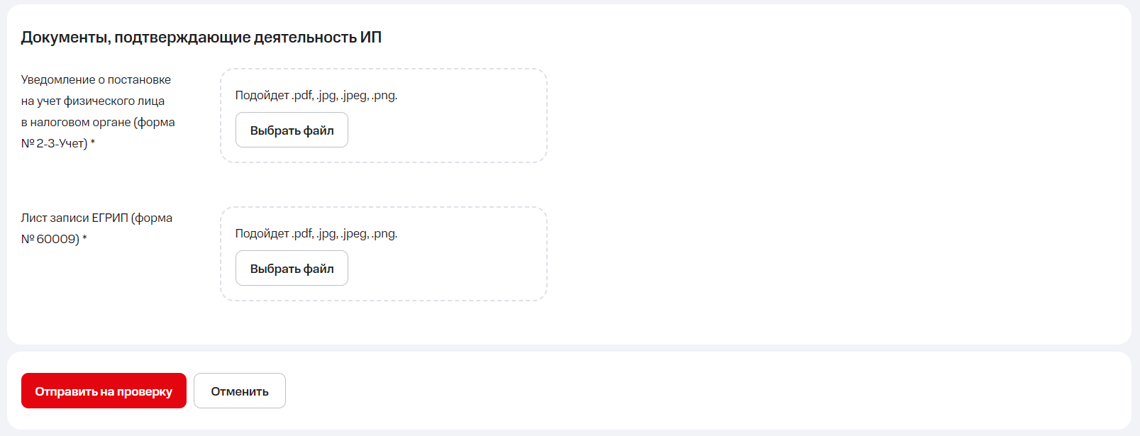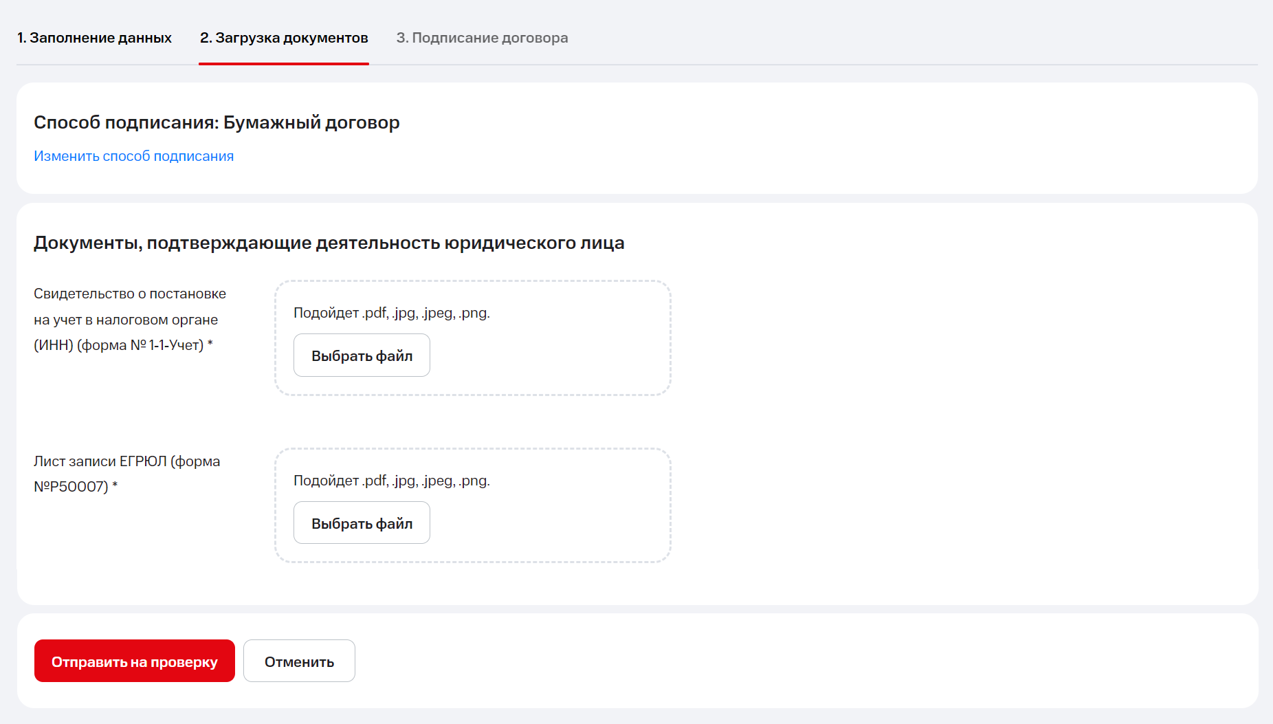 Шаг 2. Загрузите подтверждающие документы. Документы должны быть в форматах .pdf, .jpg, .jpeg, .png: