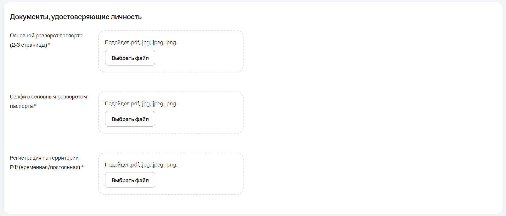 Шаг 2. Загрузите в форматах .pdf, .jpg, .jpeg, .png. следующие документы:
