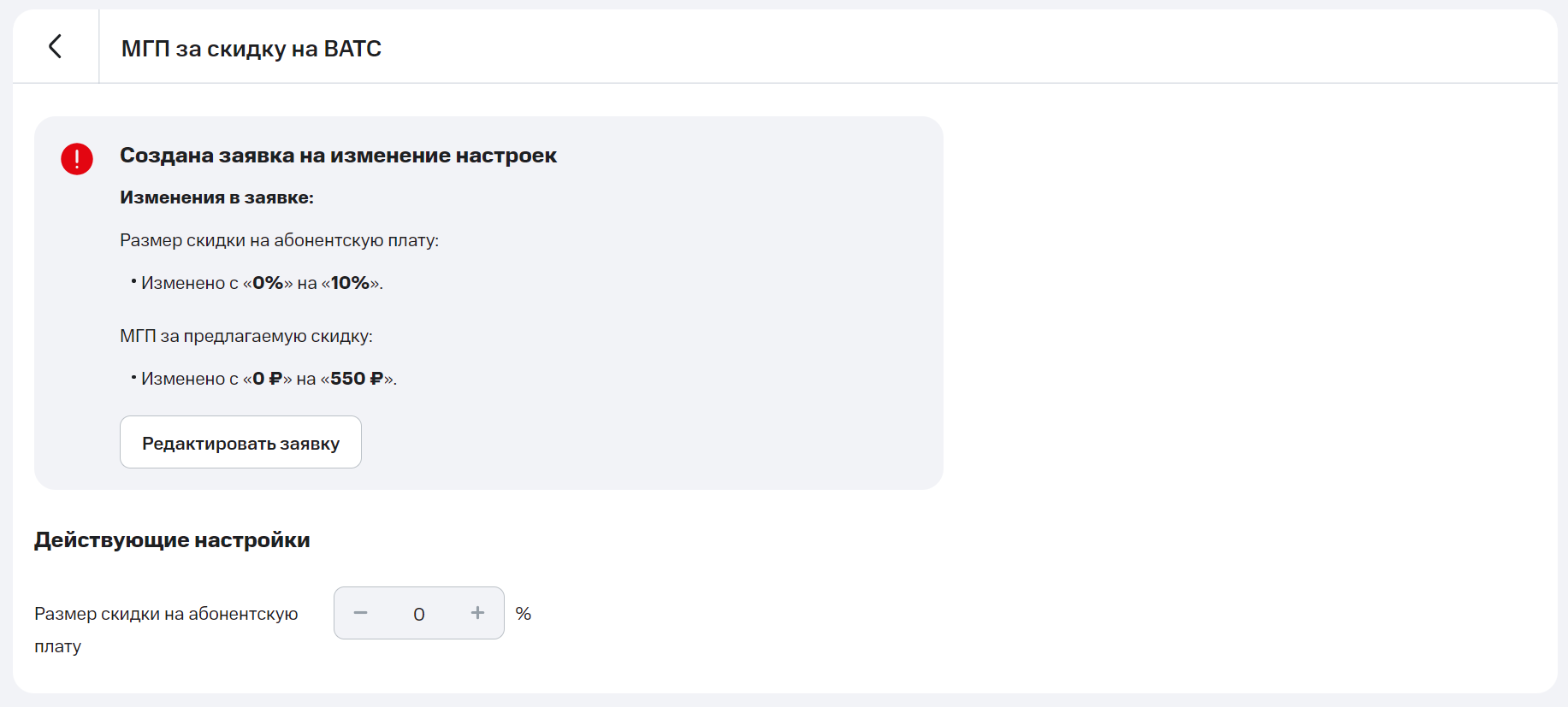 Обратите внимание: при подтверждении заявки МГП и скидка на абонентскую плату назначаются с первого числа следующего месяца.