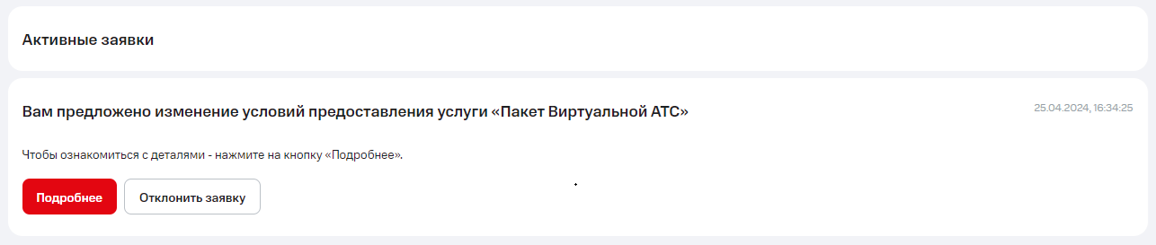 При нажатии на кнопку «Подробнее» можно узнать, какой размер скидки на абонентскую плату и МГП за скидку предлагает менеджер. Изучив условия, клиент может: