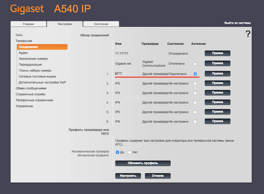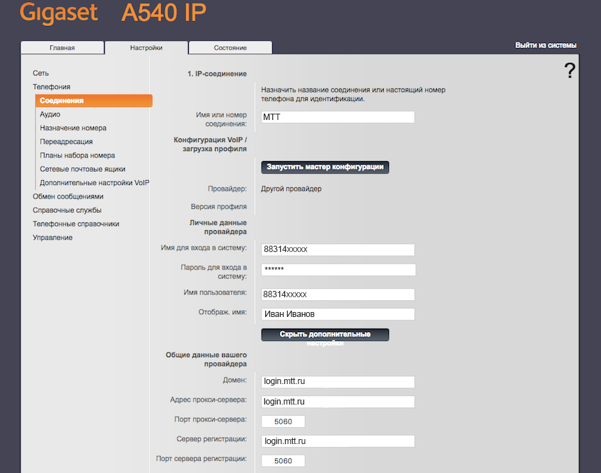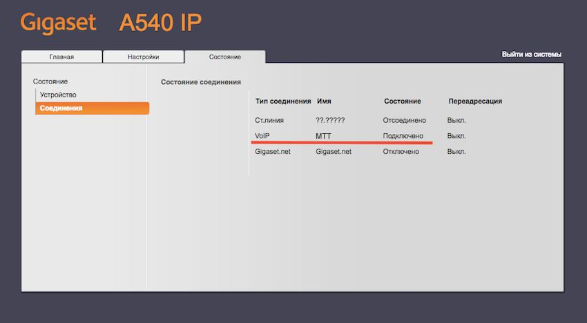 Все, вы закончили настройку IP DECT телефона. В «Состояние соединения» вы увидите ваше соединение в статусе «Подключено».