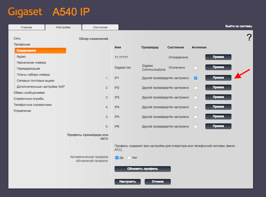 8. Выберите соединение, которое будете настраивать (можно любое доступное) и нажмите «Правка».
