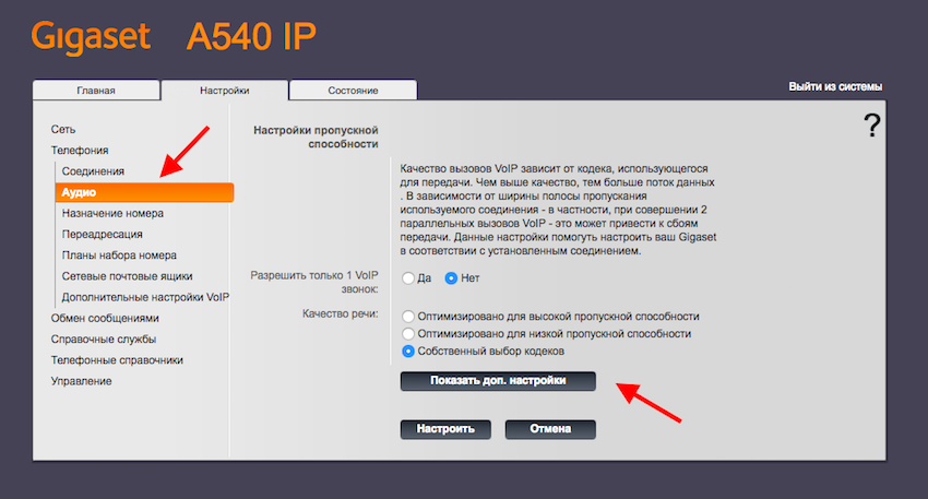 Для завершения настроек нужно перейти в раздел «Аудио» – «Показать доп. настройки».