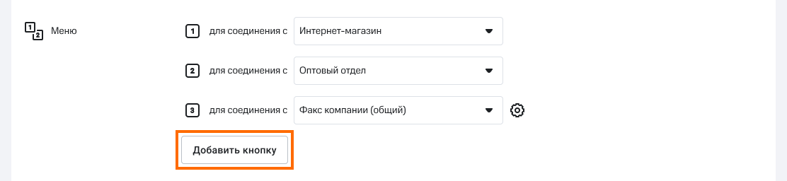 3. Если для настройки голосового меню на первом уровне вам нужно больше трёх кнопок, нажмите «Добавить кнопку». Вы можете назначить пункты меню на каждую из десяти цифр, включая 0.