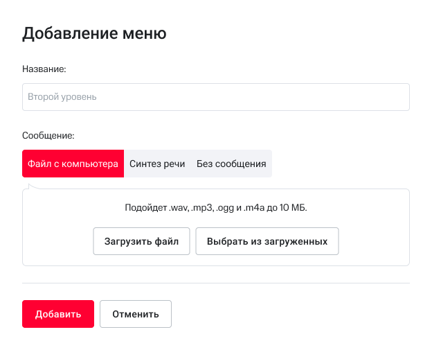 8. Голосовое приветствие настраивается отдельно для каждого уровня меню. Выберите приветствие для второго уровня меню и нажмите «Добавить».