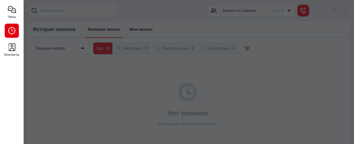 Чтобы быстро найти нужного клиента, коллегу или канал, воспользуйтесь единым окном поиска. Прямо из окна поиска можно написать или позвонить контакту.