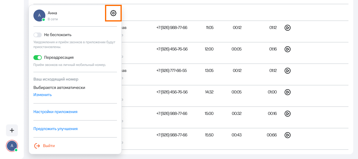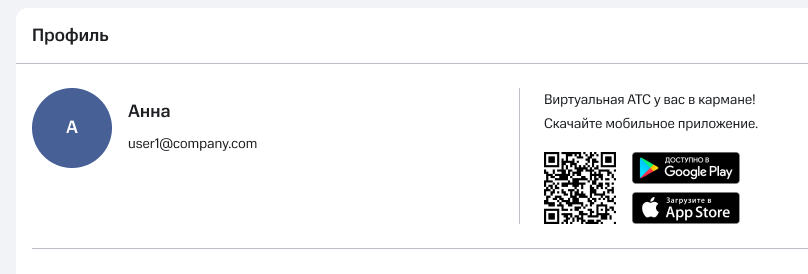 Кроме того, в этом блоке указаны ваш внутренний номер в АТС, должность и уровень прав в системе.