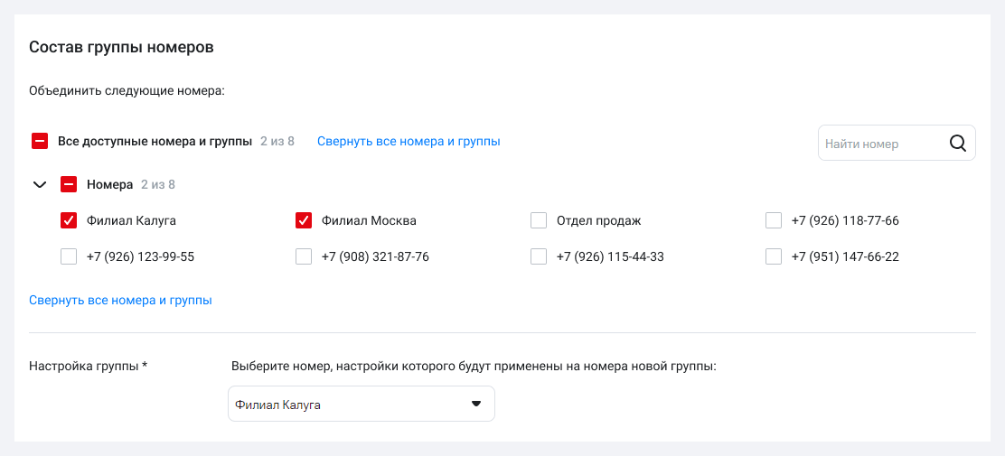 4. Выберите номер, настройки которого нужно применить для всех номеров создаваемой группы.