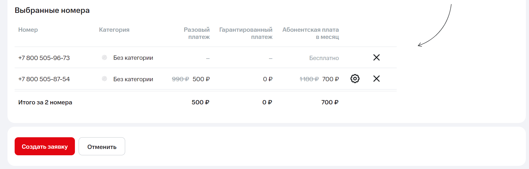 Обратите внимание: финансовые средства будут списаны со счета и номера активируются только после подписания договора.