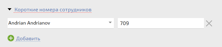 Вернемся в настройки параметров интеграции в ПланФикс и закончим их настройку. Добавьте короткие номера сотрудников: слева выберите сотрудников, заведенных в ПланФикс, справа укажите их короткие номера в Виртуальной АТС.