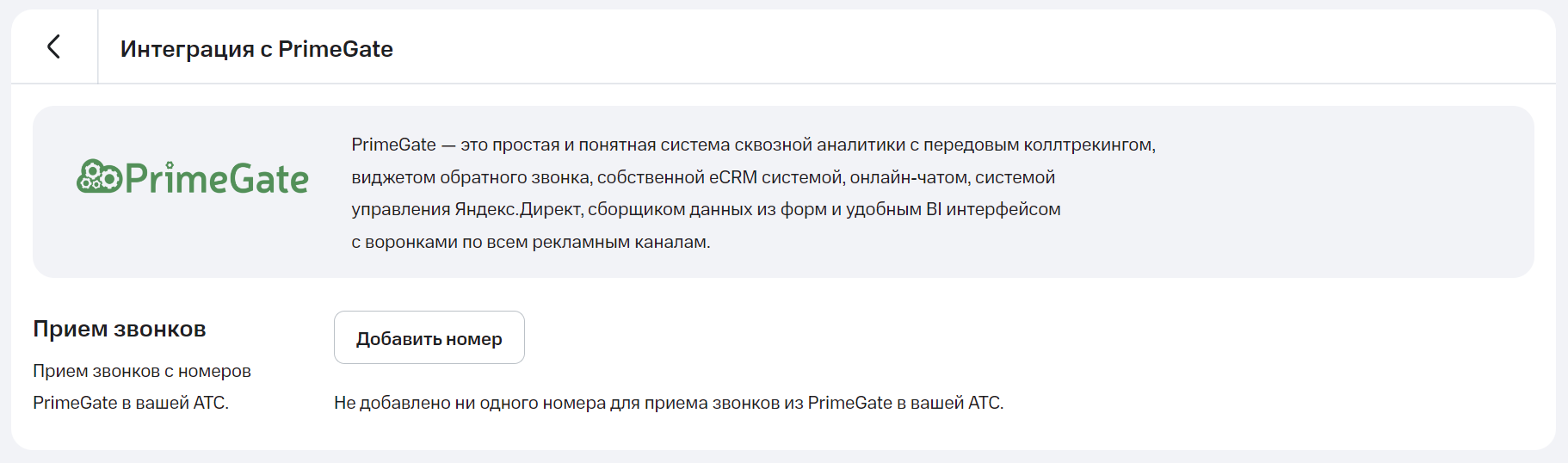 Интеграция с PrimeGate позволит вам бесплатно принимать звонки из PrimeGate в вашей ВАТС.