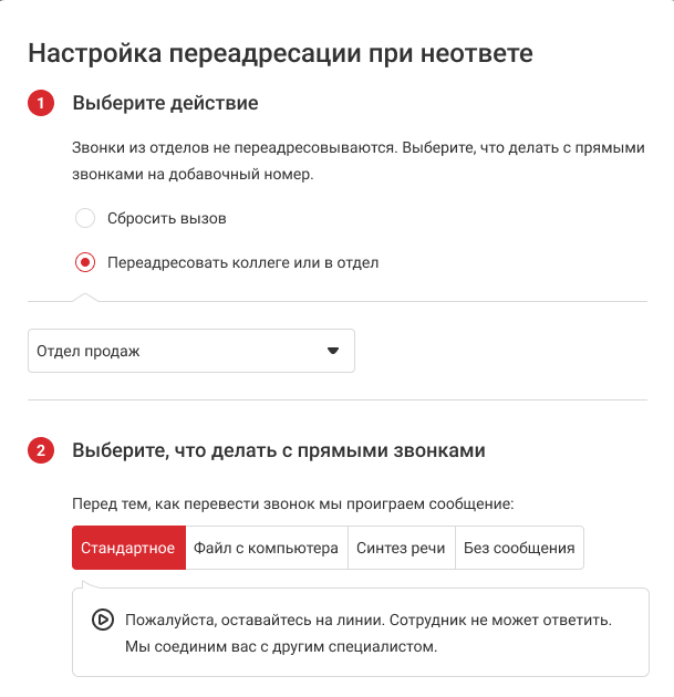 Как настроить переадресацию прямых звонков, на которые долго не отвечают