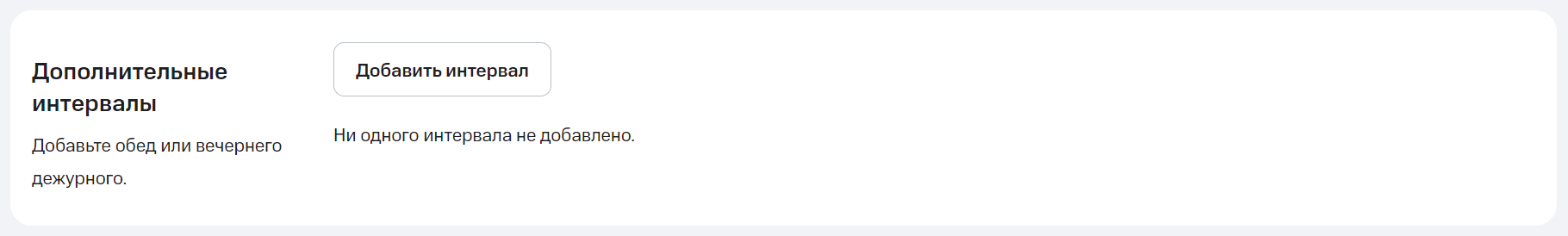 1. В разделе «Дополнительные интервалы» нажмите на кнопку «Добавить интервал».