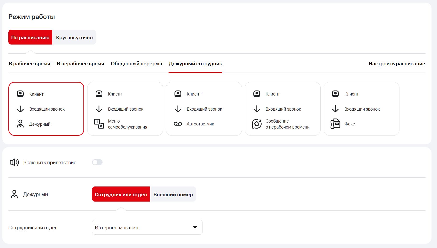 Как настроить прием звонков на дежурного сотрудника