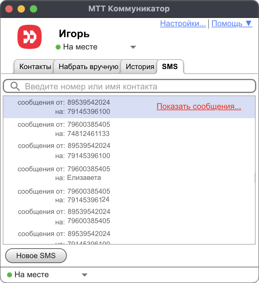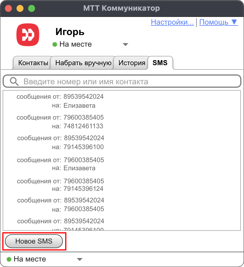 Чтобы отправить клиенту первое SMS-сообщение через Коммуникатор, в списке чатов нажмите на кнопку «Новое SMS».