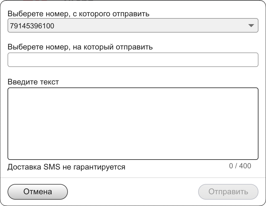 В открывшемся окне выберите номер, с которого будет отправлено сообщение. Если номер назначен на SIM-карту, в списке будет указано, за кем он закреплен. Затем введите номер телефона получателя и текст сообщения в соответствующих полях. Нажмите на кнопку «Отправить».