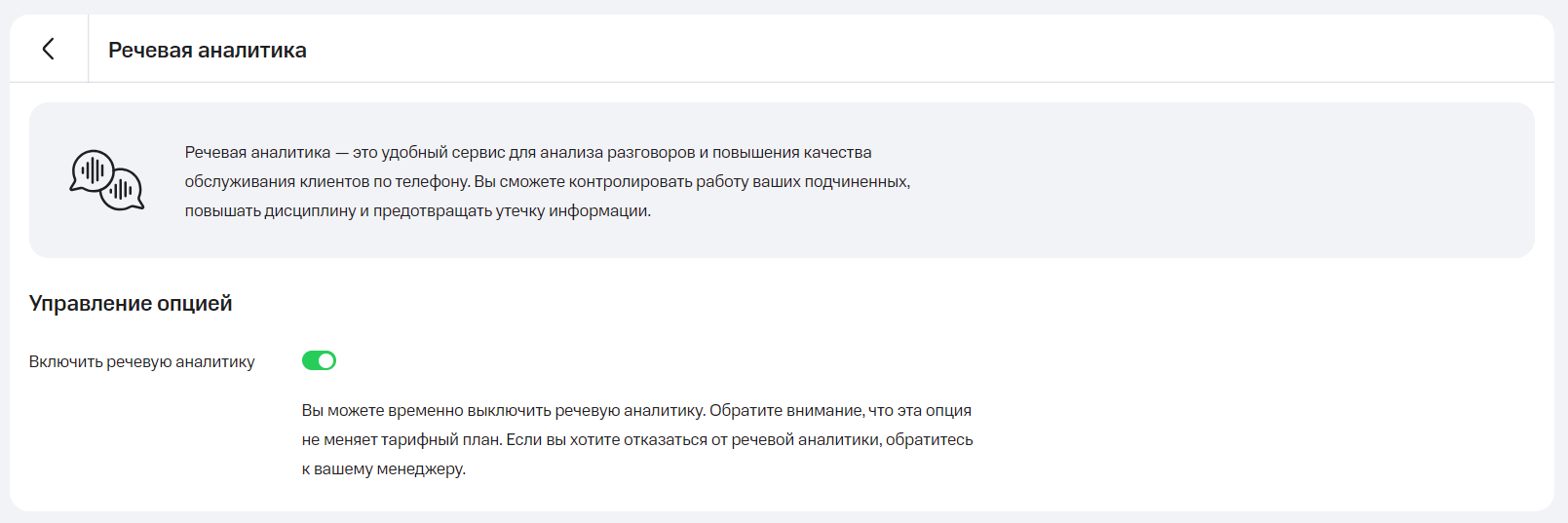 2. В новом окне включите опцию «Речевая аналитика» – передвиньте переключатель вправо.
