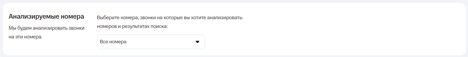 Обратите внимание: если у вас подключен только один номер, то перейдите в «Номера», чтобы изменить количество и выбрать номера для анализа в этой секции.