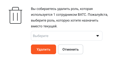 2. Если роль используется сотрудниками, появится предупреждение с просьбой назначить этим сотрудникам другую роль вместо текущей.