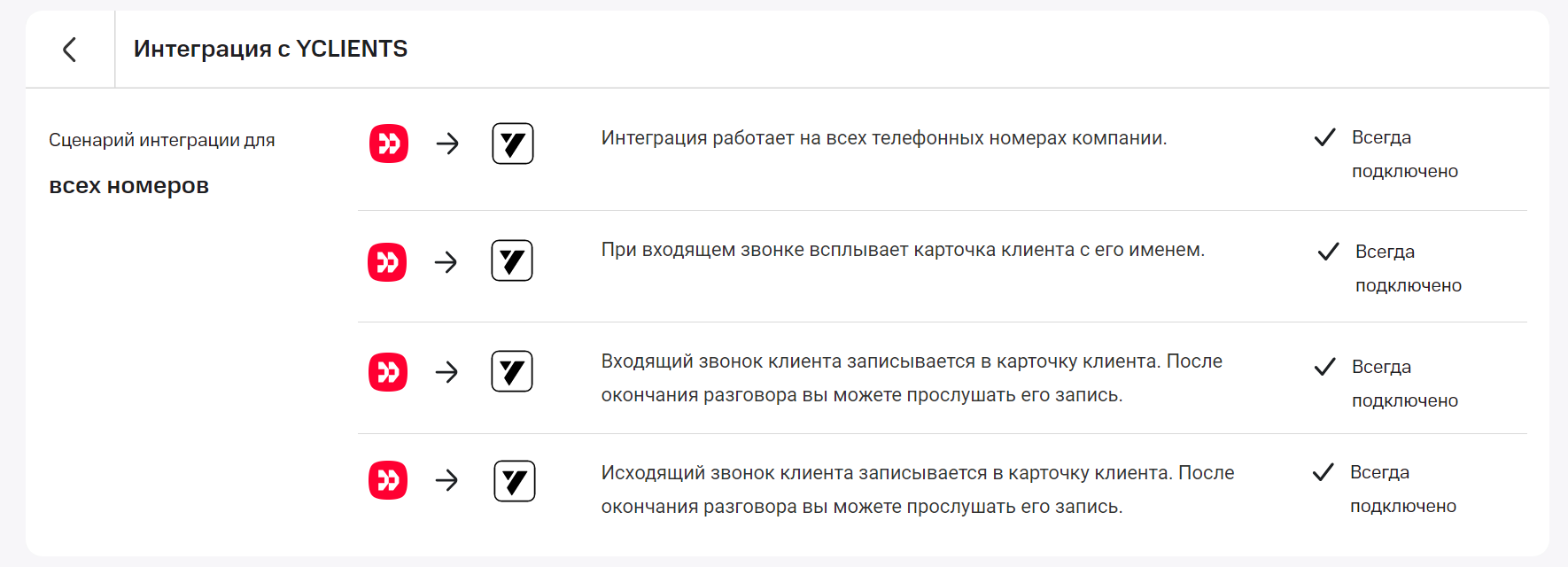 Настройка завершена. Теперь телефония будет работать в YClients.
