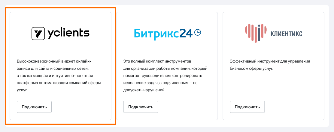 5. В общем списке интеграций статус виджета YClients изменится на «Подключено».
