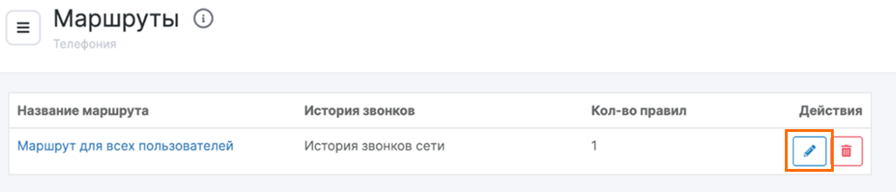 Маршрут по умолчанию всего один – «Маршрут для всех пользователей». Чтобы посмотреть и изменить настройки этого маршрута, нажмите на кнопку «Редактировать», как показано на картинке.